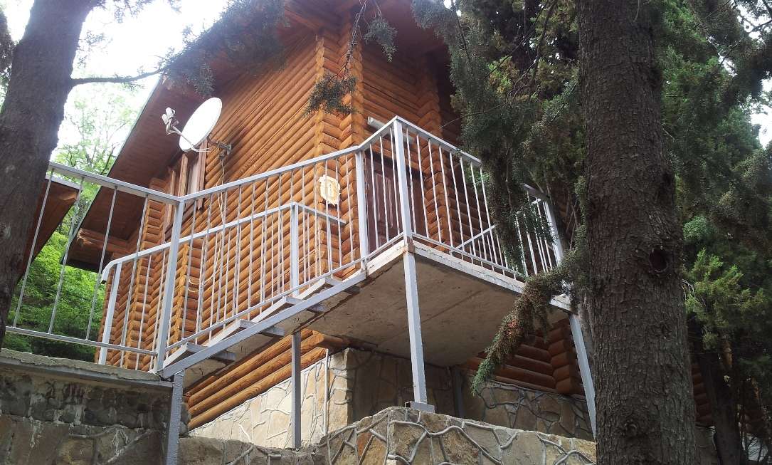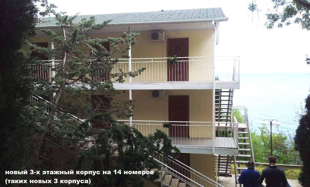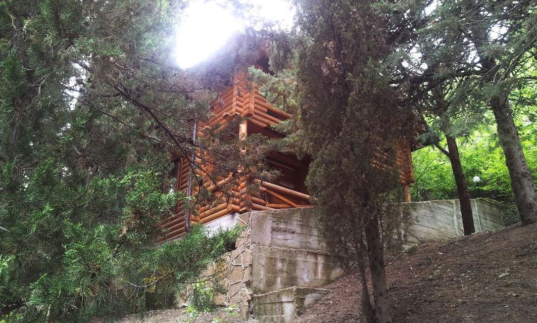 Двухэтажный шести комнатный сруб со всеми удобствами, с кухней, с сауной и гидромассажным мини бассейном на открытом воздухе расположенном в собственном дворике сруба. На первом этаже расположены кухня, просторная гостиная с выходом на террасу балкона, сауна, душевые, санузел. На втором этаже расположены 4 спальни и санузел. Балконы с видом на море на первом и втором этаже. Выход к мини-бассейну через террасу балкона 1 этажа. В срубе оборудованная кухня, эл. чайник, холодильник, телевизор, кондиционеры, бойлера. Не более 100 м. до моря и пляжей.
