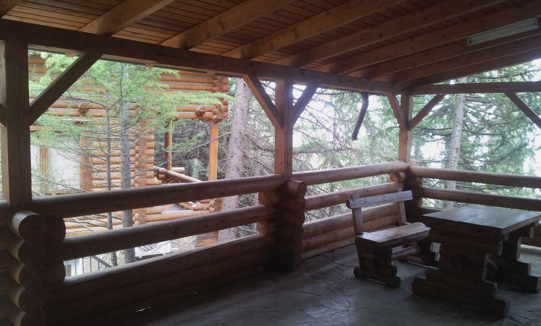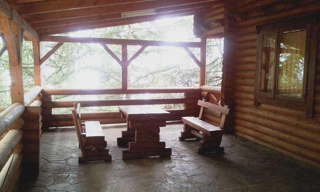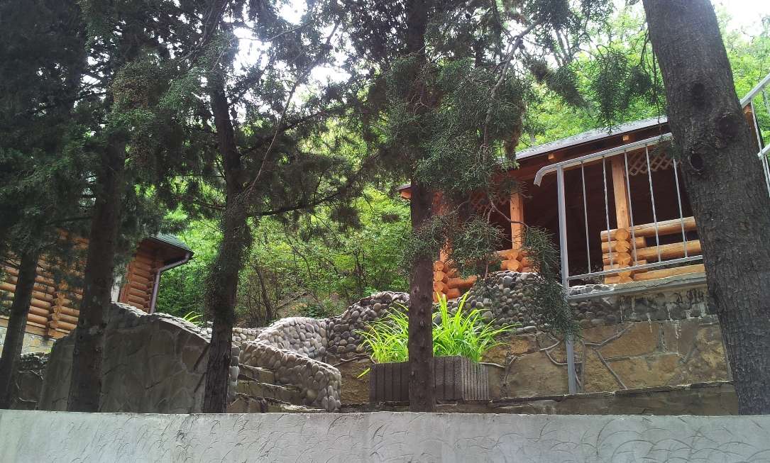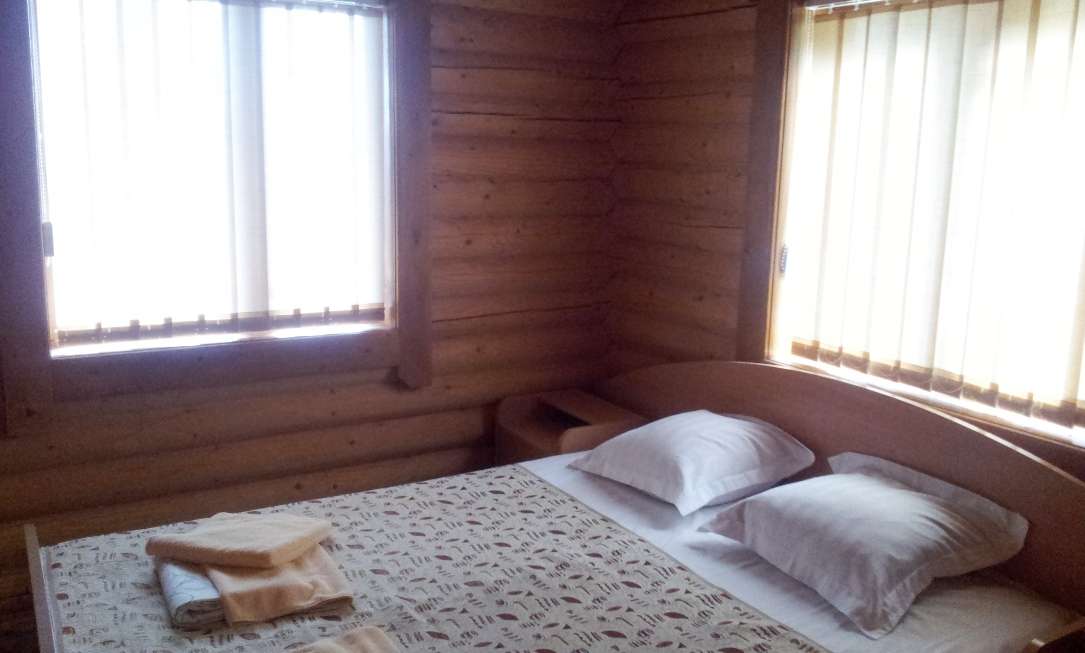 Одноэтажный однокомнатный сруб со всеми удобствами, с кондиционером, двуспальная кровать и раскладной диван, терраса. Не более 100 м. до моря и пляжей. В номере есть эл. чайник, холодильник, телевизор, кондиционер, бойлер. Сруб большой, комната разделена на две зоны - спальную и гостиную.