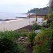 Пляж: собственный мелко галечный, в 50-300 метрах от корпусов и коттеджей, оборудован теневыми навесами и кабинками для переодевания, на прокат выдаются лежаки и пляжные принадлежности.