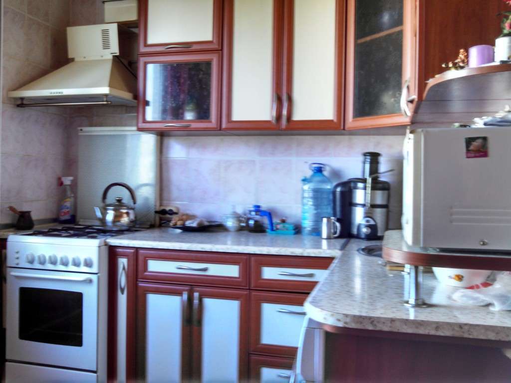 Описание: Четырехкомнатная квартира площадью 90 м2 с отличным ремонтом. Четвертый этаж пятиэтажного дома, не угловая, чистый подъезд, детские площадки во дворе. Все комнаты раздельные, автономное экономичное отопление, 2 кондиционера. Кухня остается полностью, вместе с кухонным уголком и дубовым столом, стиральной машиной, остальная мебель и техника — по договоренности. Развитая инфраструктура, море рядом.