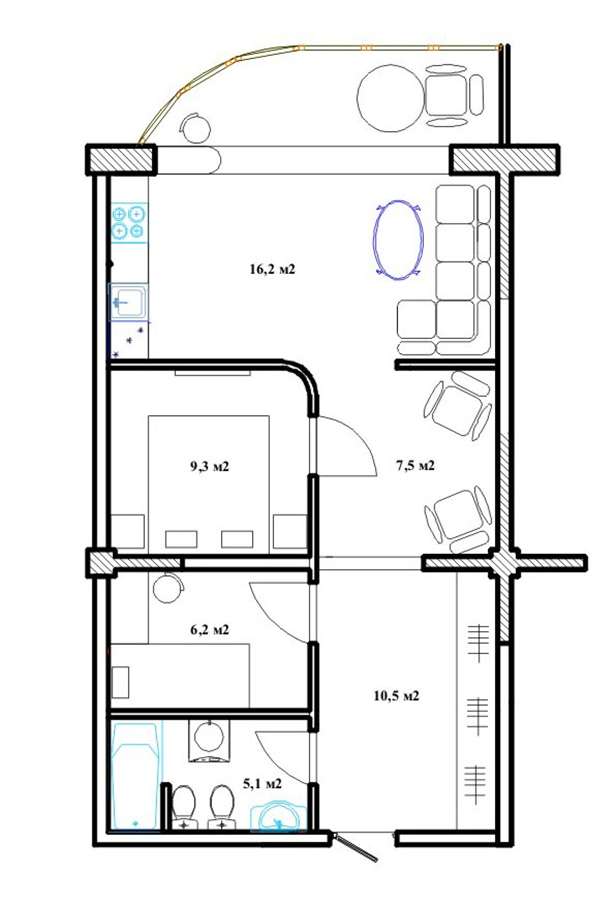 Квартира находится на 2-м этаже 9-ти этажного дома, общая площадь 62 кв.м. Две раздельные комнаты (спальня для взрослых и детская) и кухня-студия. Дизайнерский ремонт. Квартира подходит, как для постоянного проживания или отдыха во время отпуска, так и для бизнеса (сдачи в аренду под отдых или офис). До набережной и моря 7 минут пешком.