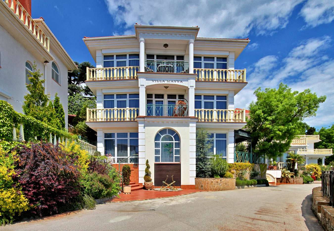 Продается шикарная 3-х этажная «Вилла «Майя»» в 20 минутах езды от Ялты в городе Алупка на территории элитного коттеджного посёлка «Сон у моря». Сам поселок расположенв живописном уголке на берегу Черного моря у подножья горы Ай-Петри, в 300-метровой близости к Воронцовскому дворцу. Сюда можно добраться как сухопутным путем, так и по морю - для этого в элитном поселке оборудован причал для яхт.