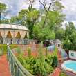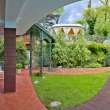 Территория облагорожена, выполнен ландшафтный дизайн. Экзотические зеленые насаждения оборудованы автоматической системой полива.