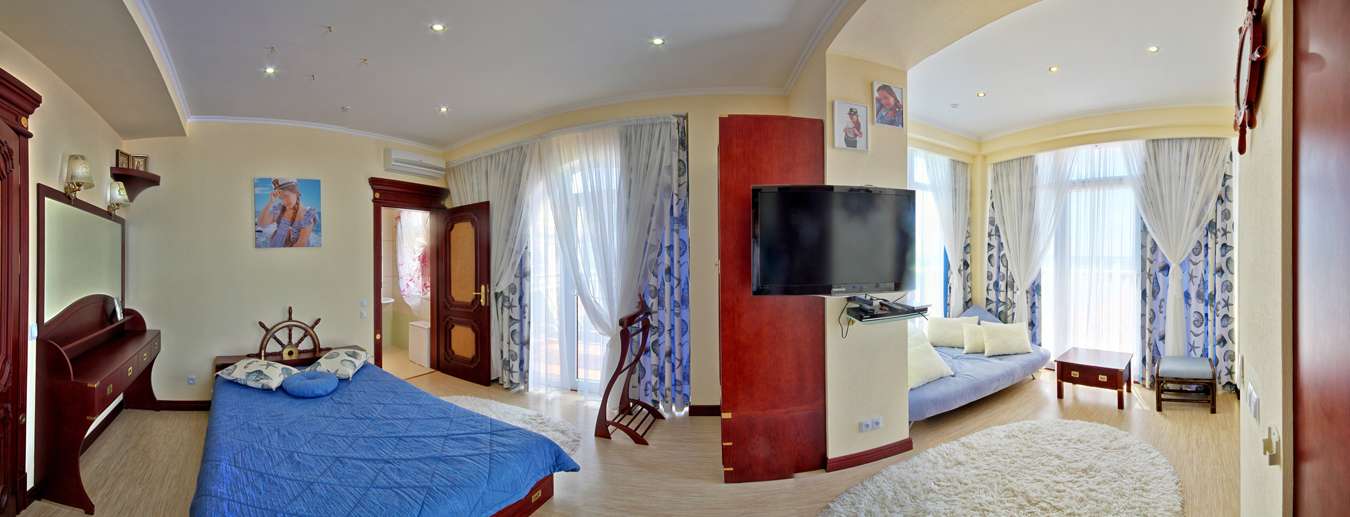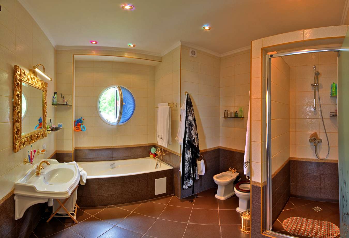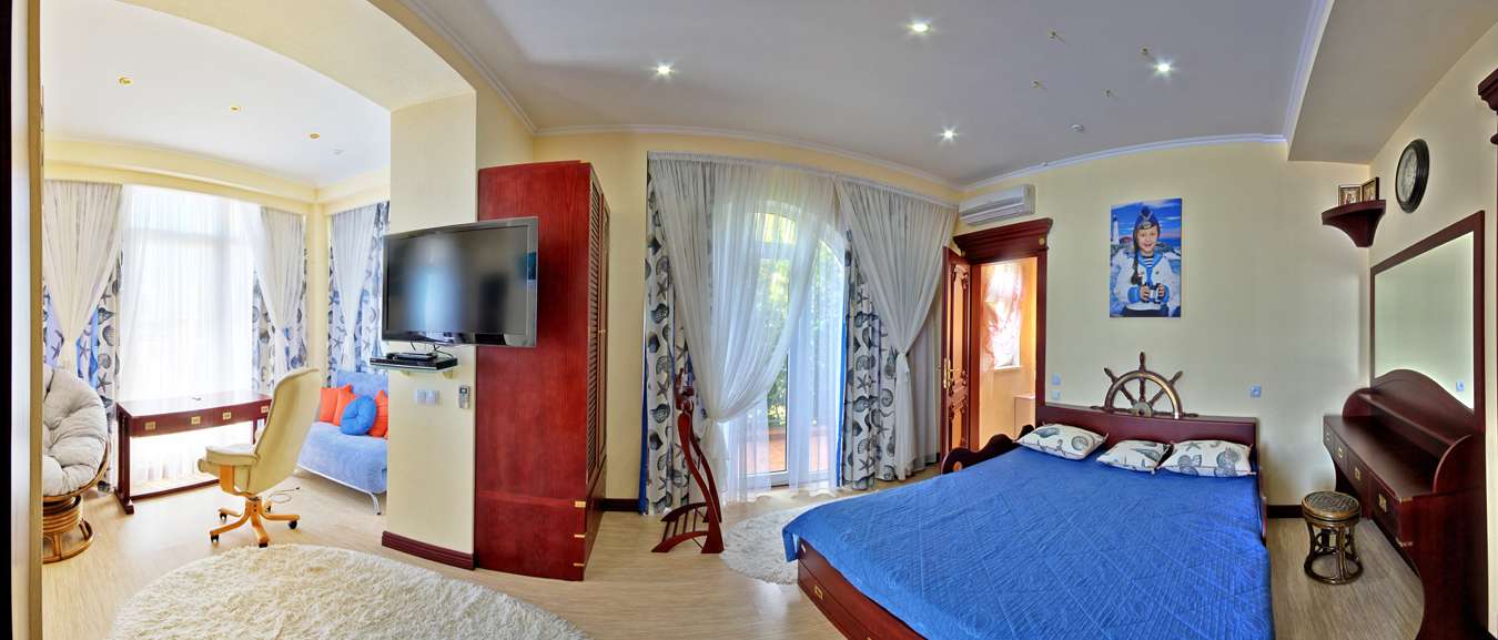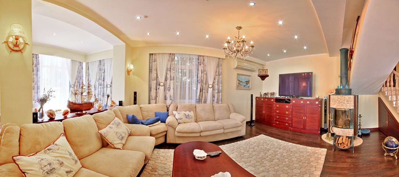 Общая площадь домовладения 358 м2 в 3 этажа + подвальное помещение. В доме пять спален, три санузла, большая гостиная комната и кухня-столовая с выходом на террасу. Выполнен эксклюзивный дизайнерский ремонт и изысканная отделка в классическом стиле - сочетание натурального мрамора с литой и кованой бронзой. Элитная сантехника. Шикарная мебель из ценных пород дерева и ротанга. Бытовая техника лучших европейских производителей. Дом оборудован системами климат-контроля. Из окон открывается панорамный вид на море.