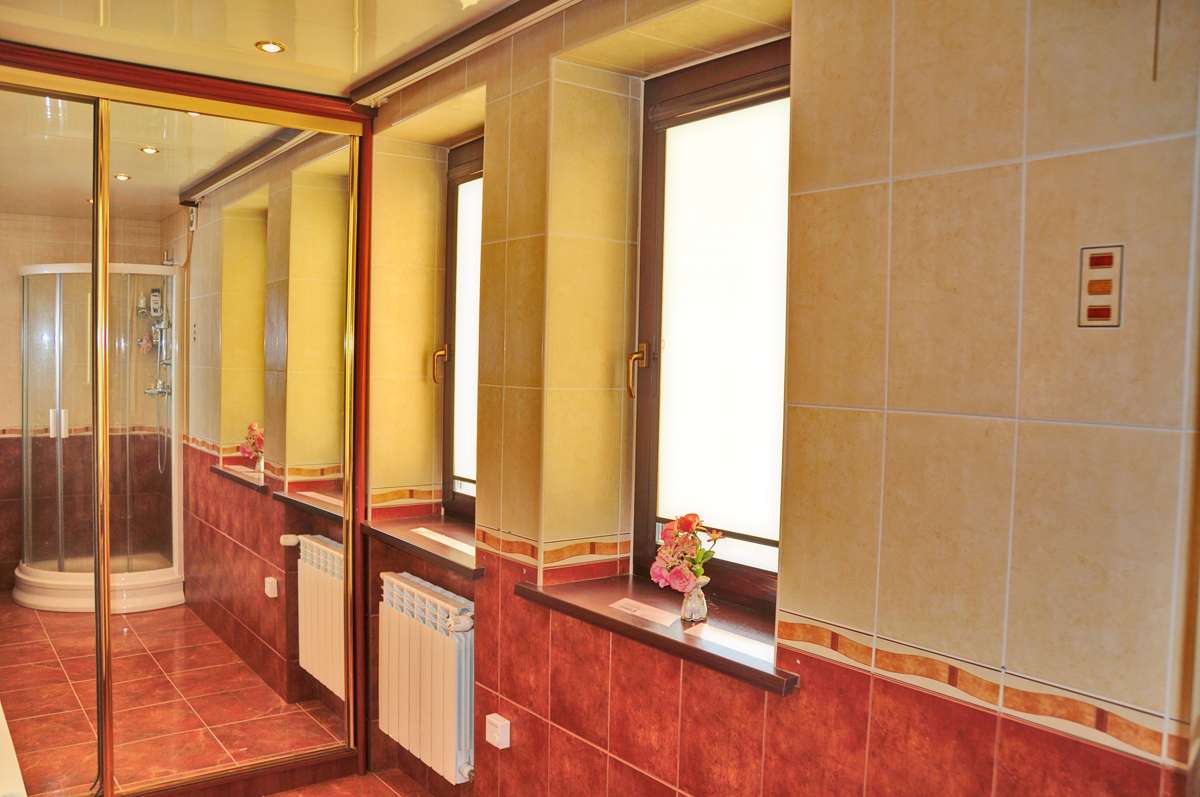 Все коммуникации: Центральное водоснабжение, магистральный газ, отопление автономное газовое. Во всех комнатах установлены кондиционеры. Пол натуральный паркет, узорный из 3 видов дерева. Санузлы отделка итальянской и испанской плиткой. Окна современные деревянные под пластик, производства Германии. Стены в гараже облицованы кафельной белой плиткой. Крыша дома покрыта битумной черепицей производства Чехии с гарантией на 25 лет. Дом оснащен системой видеонаблюдения: наружными видеокамерами и сигнализацией, а так же спутниковой антенной.